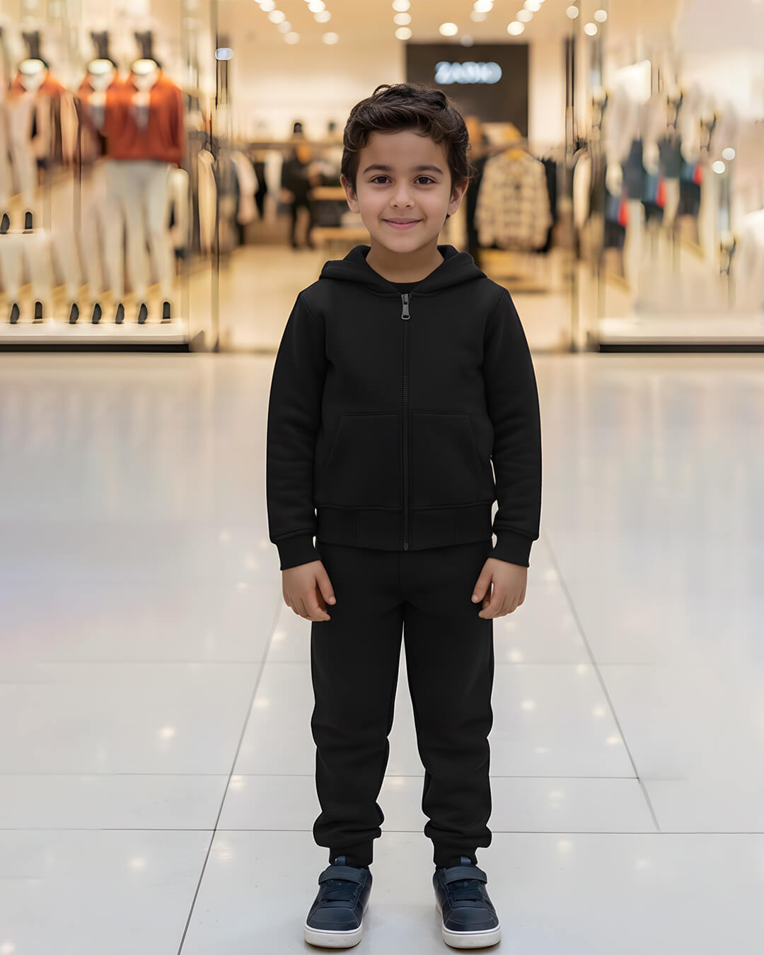 طقم شتوي للأطفال مكون من قطعتين – سويت شيرت وبنطلون بخصر مرن وسوستة قوية