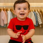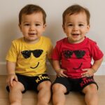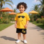 - تيشيرت صيفي: قماش خفيف وناعم، يسمح بمرور الهواء ليحافظ على راحة طفلك طوال اليوم. التصميم العصري مع لمسات فنية تضيف لمسة من الأناقة.