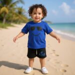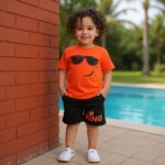- شورت مريح: بنطلون شورت يناسب أجواء الصيف الحارة، مع خصر مرن يتيح لطفلك حرية الحركة دون أي قيود.